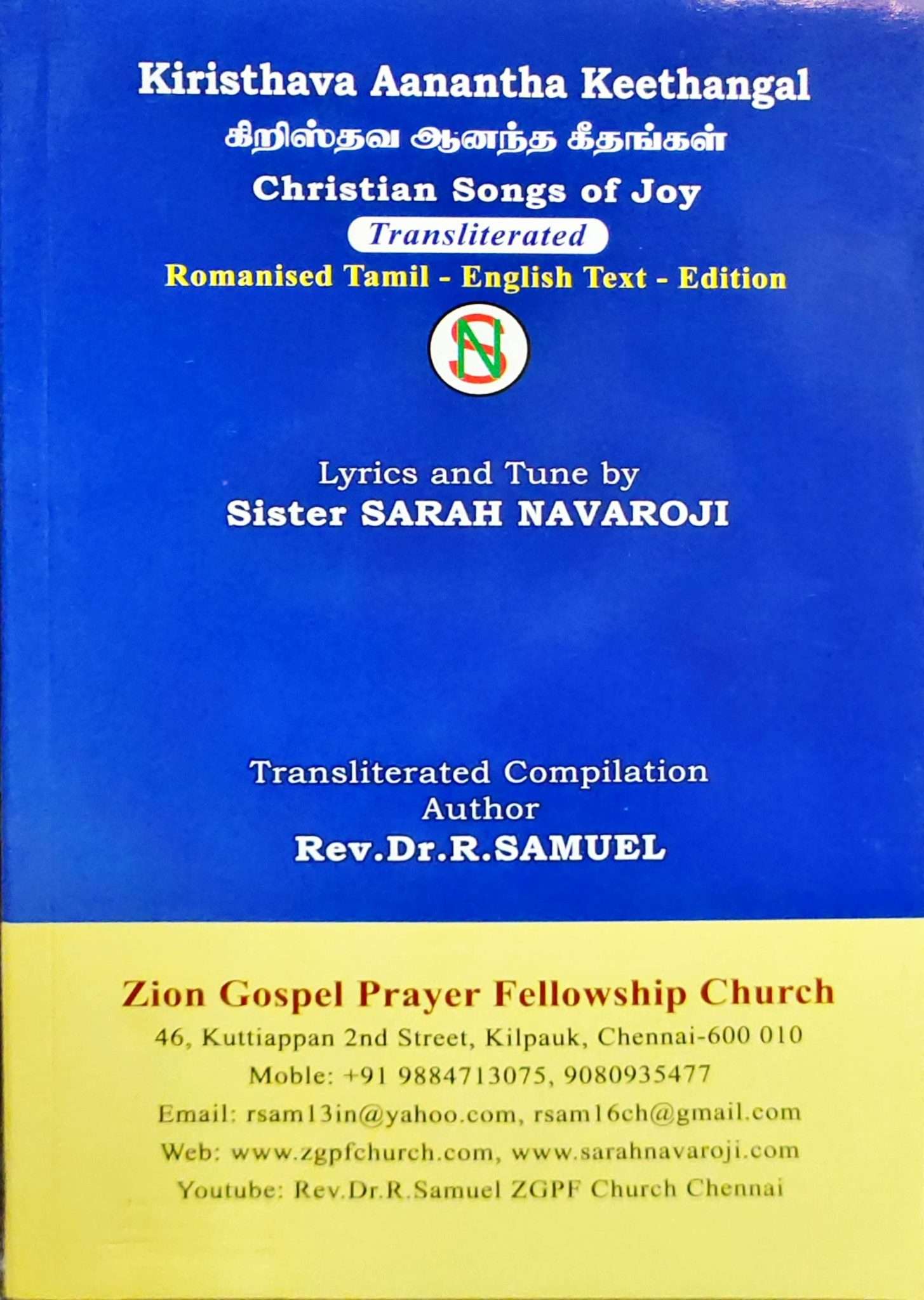Tamil Romanised English Text – Christian Songs Of Joy : by- Sis. Sarah Navaroji